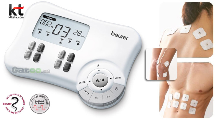 شرکت بيورر از جمله کمپاني‌هايي است که براي رفع اين تنس ها دستگاه‌هايي چون EM80 را طراحي کرده که اين دستگاه از طريق الکترودهايي که به نقاط مدنظر متصل شده باعث گردش خون و رفع گرفتگي و حتي ماساژ مي‌شود.EM80 داراي 4 الکترود است و تمامي تنظيمات مورد نظر آن اعم از شدت و تنظيم تايمرو … را مي‌توان در صفحه نمايش اين دستگاه ديد و تغيير داد. منبع تغذيه‌ي اين دستگاه باتري قلمي است که شايد حسن بزرگي براي بسياري از افراد مشتاق به خريد باشد چرا که در هر مکان بدون نگراني از نبود شارژر و پريز برق قابل استفاده خواهد بود.آیا می دانید فرکانس تنس یعنی با استفاده از جریان الکتریکی از طریق پوست , باعث تحریک عصب ناحیه درمان شویم.شدت آن بین 12 تا 30 میلی آمپر است که به شکل ضربه ای سوزنی طراحی شده است و از طریق بسته شدن دریچه درد و ترشح طبیعی آندروفین توسط بدن در آن موضع باعث تسکین سریع درد میشود.